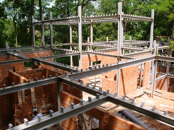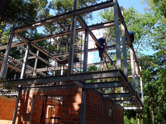 Obra: Detalhamento construtivo com fornecimento, transporte e montagem de estrutura metálica para edifício residencial.