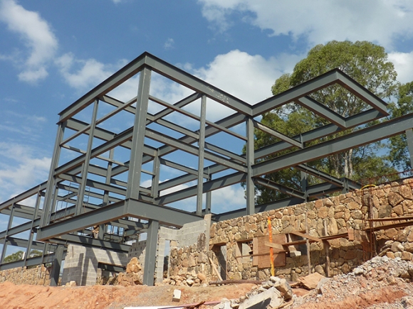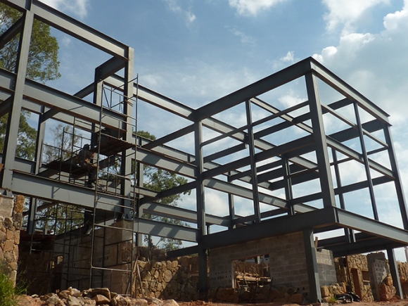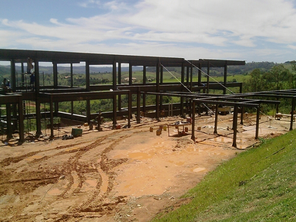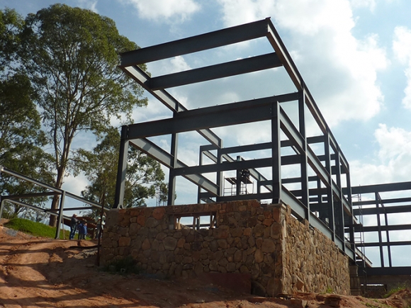 Obra: Detalhamento construtivo com fornecimento, transporte e montagem de estrutura metálica para edifício residencial.
