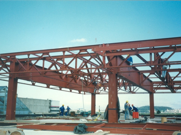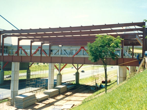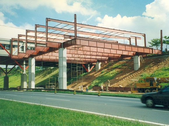 Obra: Projeto estrutural e construtivo com fornecimento e montagem de estrutura metálica para piso, fechamento e cobertura em sistema estrutural integrado com as lajes de concreto e montado na rodovia dos Bandeirantes.